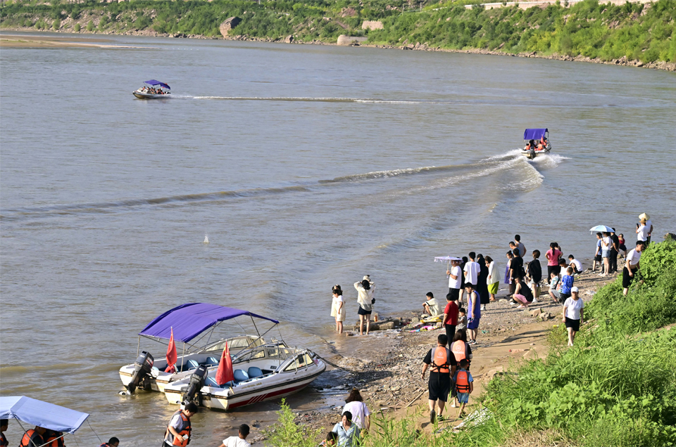 7月23日,在吕梁市临县碛口古镇,前来古镇探秘旅游的人们络绎不绝。碛口位于黄河晋陕峡谷中部,南临著名的孟门古镇,因黄河大同碛而得名。在这里,黄河由北而来,湫水河从东而至,卧虎山横亘镇北,黑龙庙雄峙河东,山的气势与河的雄浑,勾画出一幅“虎啸黄河,龙吟碛口”的壮丽图景。近年来,吕梁市不断挖掘整合古镇、古村落、红色遗址等文化旅游资源,加大文旅项目的开发力度,全力打造文旅品牌。碛口古镇作为吕梁旅游的重要组成部分,市、县两级政府坚持在充分保护好文物古迹的基础上搞好规划设计,本着修旧如旧原则,加大碛口古镇的修复开发力度,以乡村旅游为支点,充分挖掘古镇文化价值,激活文化活力,让古镇文明成为当代的好风光。(刘通摄)