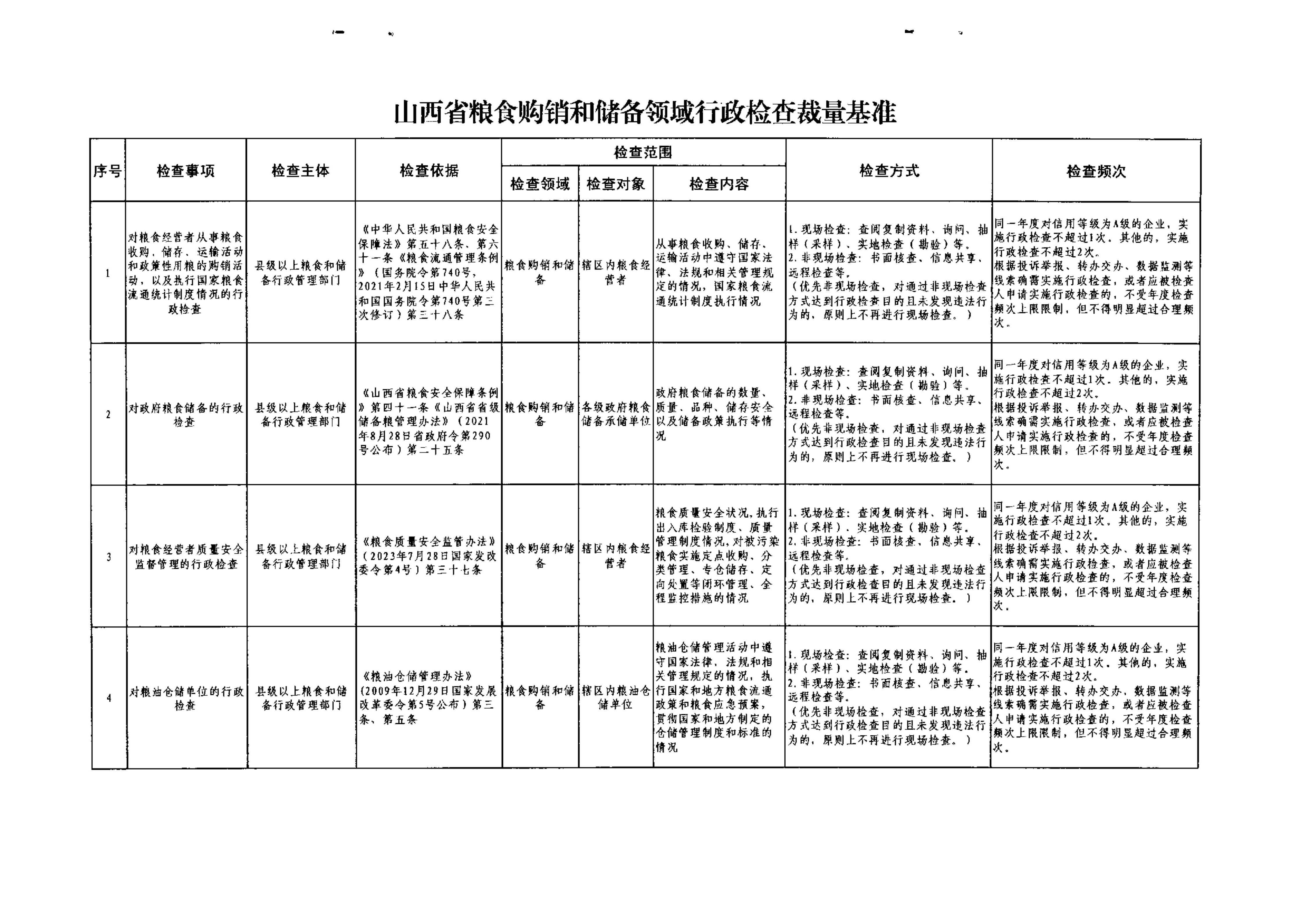 | 标 题: | 山西省粮食和物资储备局关于印发山西省粮食购销和储备领域行政检查裁量基准的通知 |