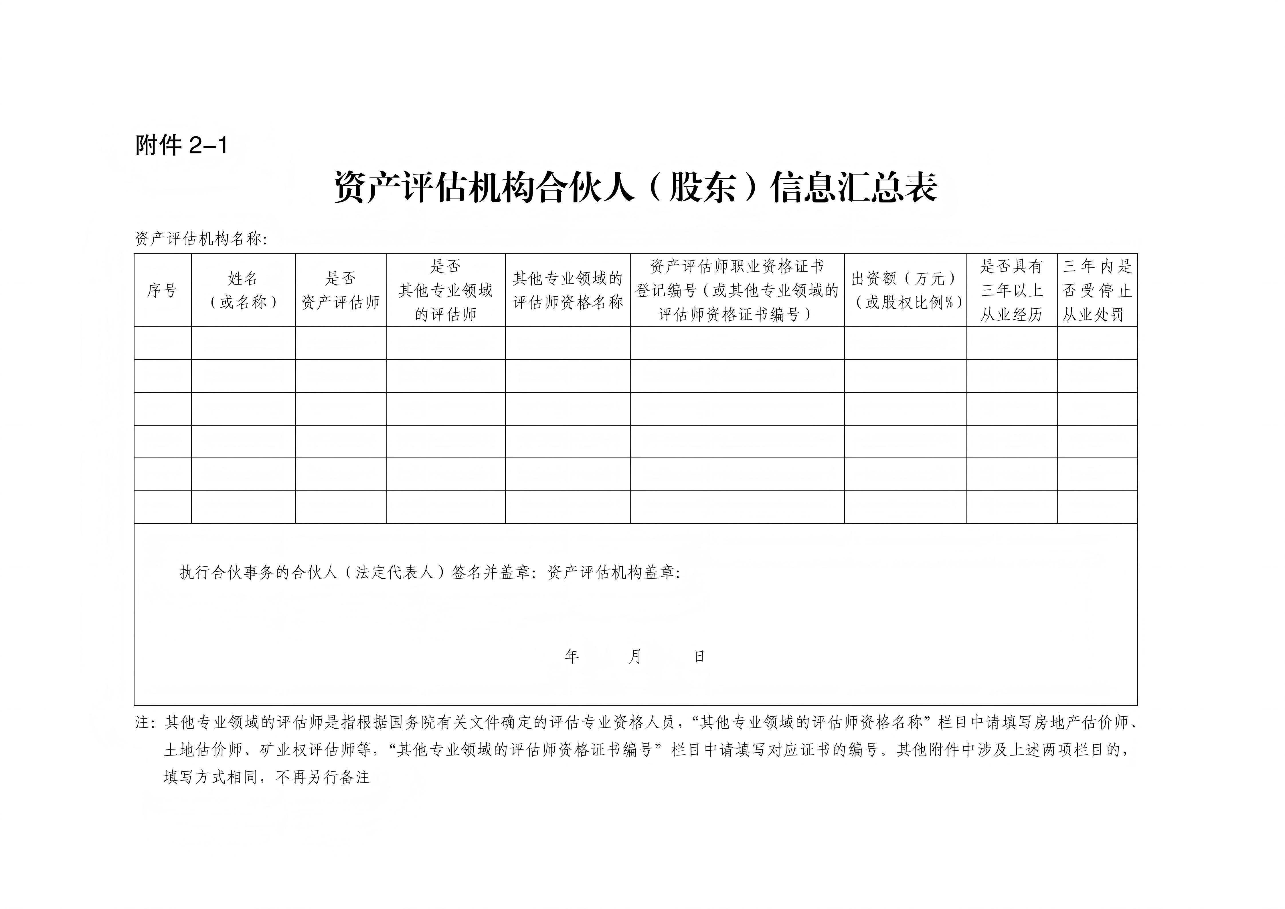 2-1.资产评估机构合伙人(股东)信息汇总表