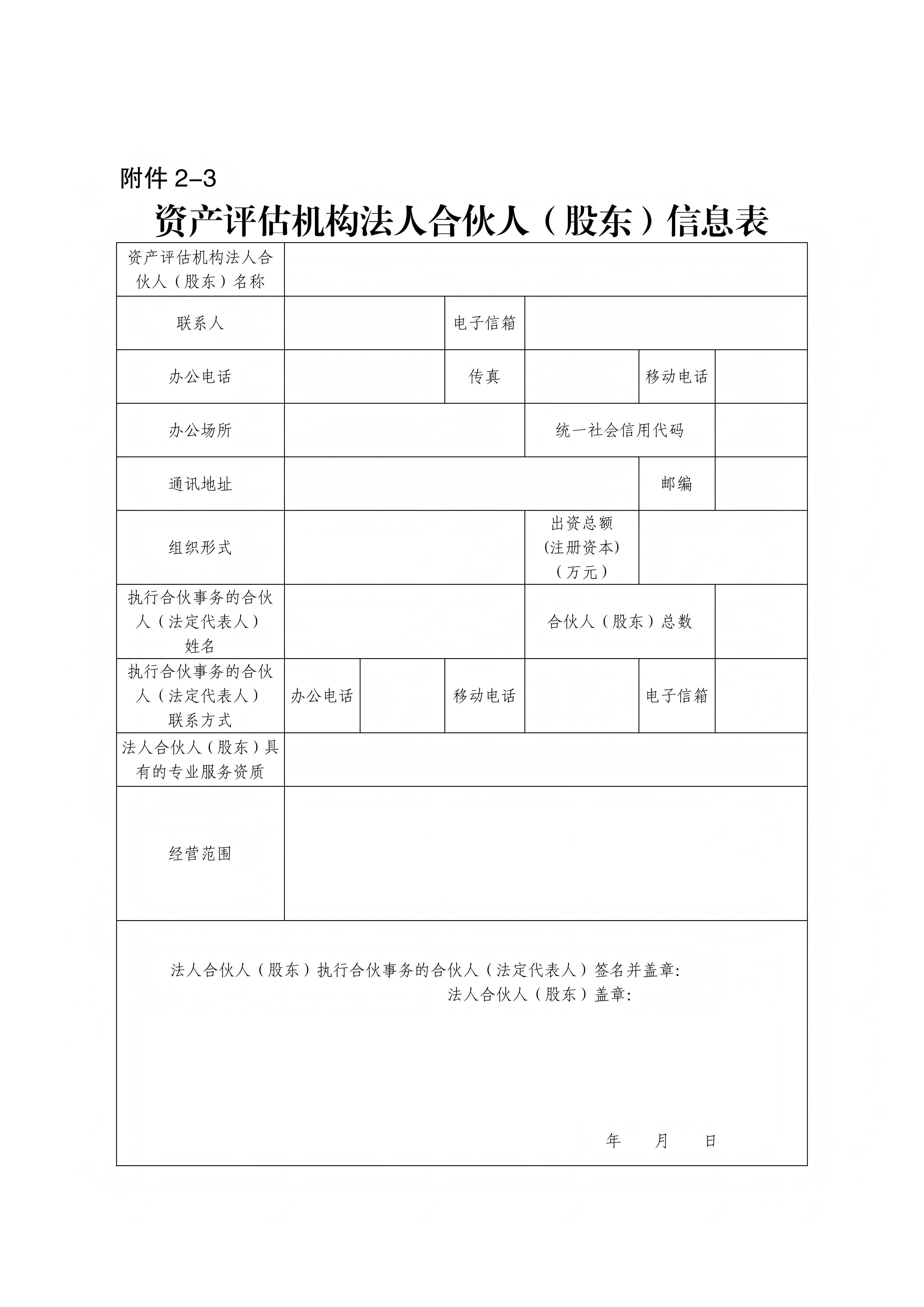 有法人合伙人(股东)的,还应当提交《资产评估机构法人合伙人(股东)信息表》(附件2-3)、法人合伙人(股东)营业执照复印件。