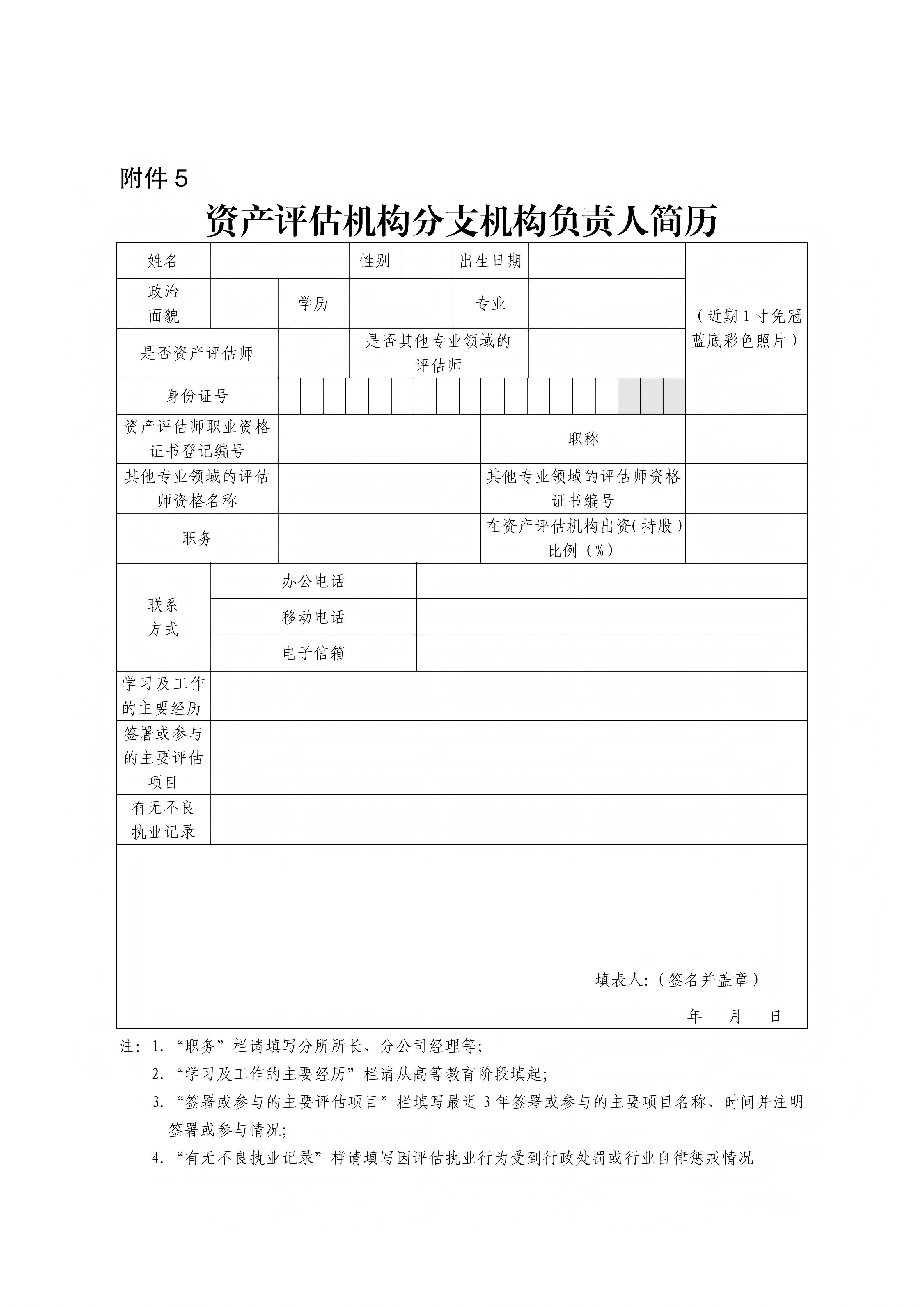5.资产评估机构分支机构负责人简历