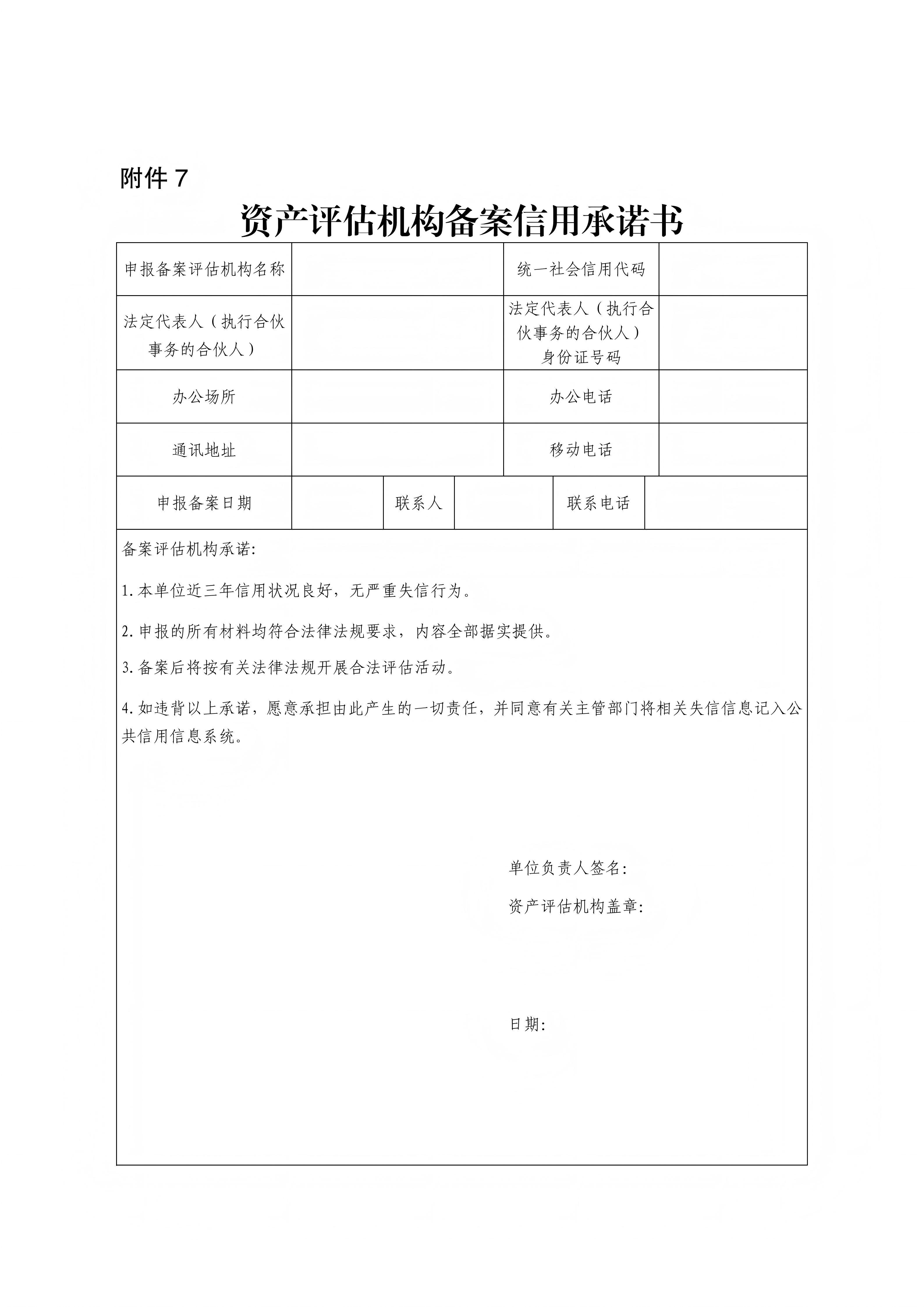 7.资产评估机构备案信用承诺书