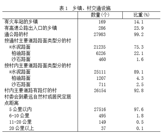 全省99.2%的村通公路,92.8%的村内主要道路有路灯。村委会到最远自然村、居民定居点距离以5公里以内为主。