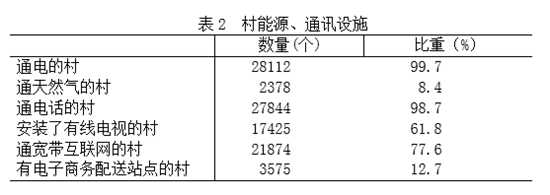 2016年末,全省99.7%的村通电,8.4%的村通天然气,98.7%的村通电话,61.8%的村安装了有线电视,77.6%的村通宽带互联网,12.7%的村有电子商务配送站点。