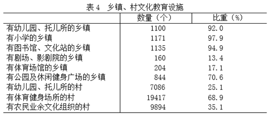 2016年末,全省92.0%的乡镇有幼儿园、托儿所,97.9%的乡镇有小学,94.9%的乡镇有图书馆、文化站,13.4%的乡镇有剧场、影剧院,17.1%的乡镇有体育场馆,70.6%的乡镇有公园及休闲健身广场。
