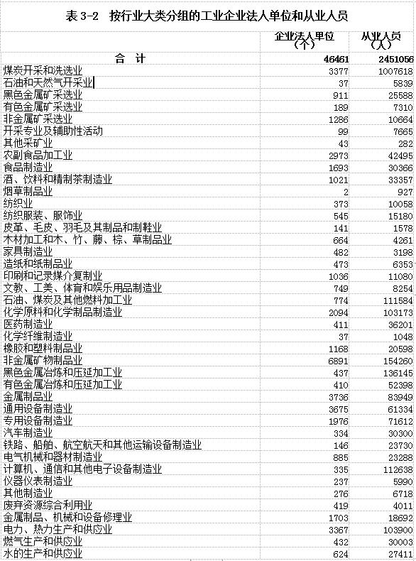 在工业企业法人单位中,采矿业5942个,制造业36096个,电力、热力、燃气及水生产和供应业4423个,分别占12.79%、77.69%和9.52%。在工业行业大类中,非金属矿物制品业、金属制品业、通用设备制造业企业法人单位数位居前三位,分别占14.83%、8.04%和7.91%。