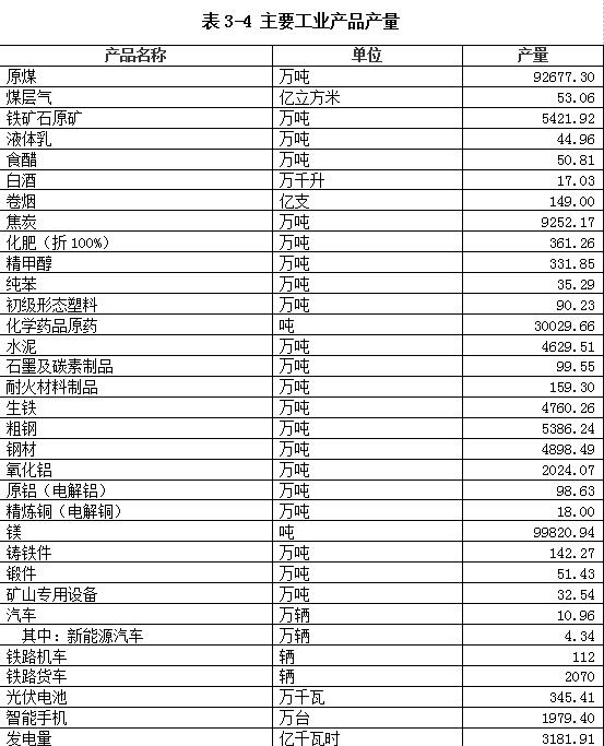 主要工业产品产量详见表3-4。