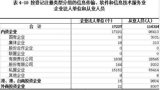 在信息传输、软件和信息技术服务业企业法人单位中,内资企业占99.79%,港、澳、台商投资企业占0.09%,外商投资企业占0.12%。