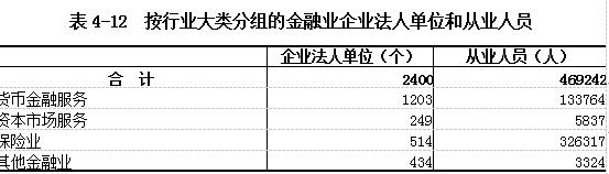 2018年末,全省共有金融业企业法人单位2400个,从业人员46.92万人(详见表4-12)。