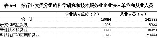 2018年末,全省共有科学研究和技术服务业法人单位21102个,从业人员18.22万人。其中,企业法人单位18084个,从业人员14.13万人,分别比2013年末增长348.40%和66.93% (详见表5-1)。