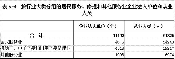 2018年末,全省共有居民服务、修理和其他服务业企业法人单位11192个,从业人员6.18万人,分别比2013年末增长345.36%和36.51%(详见表5-4)。