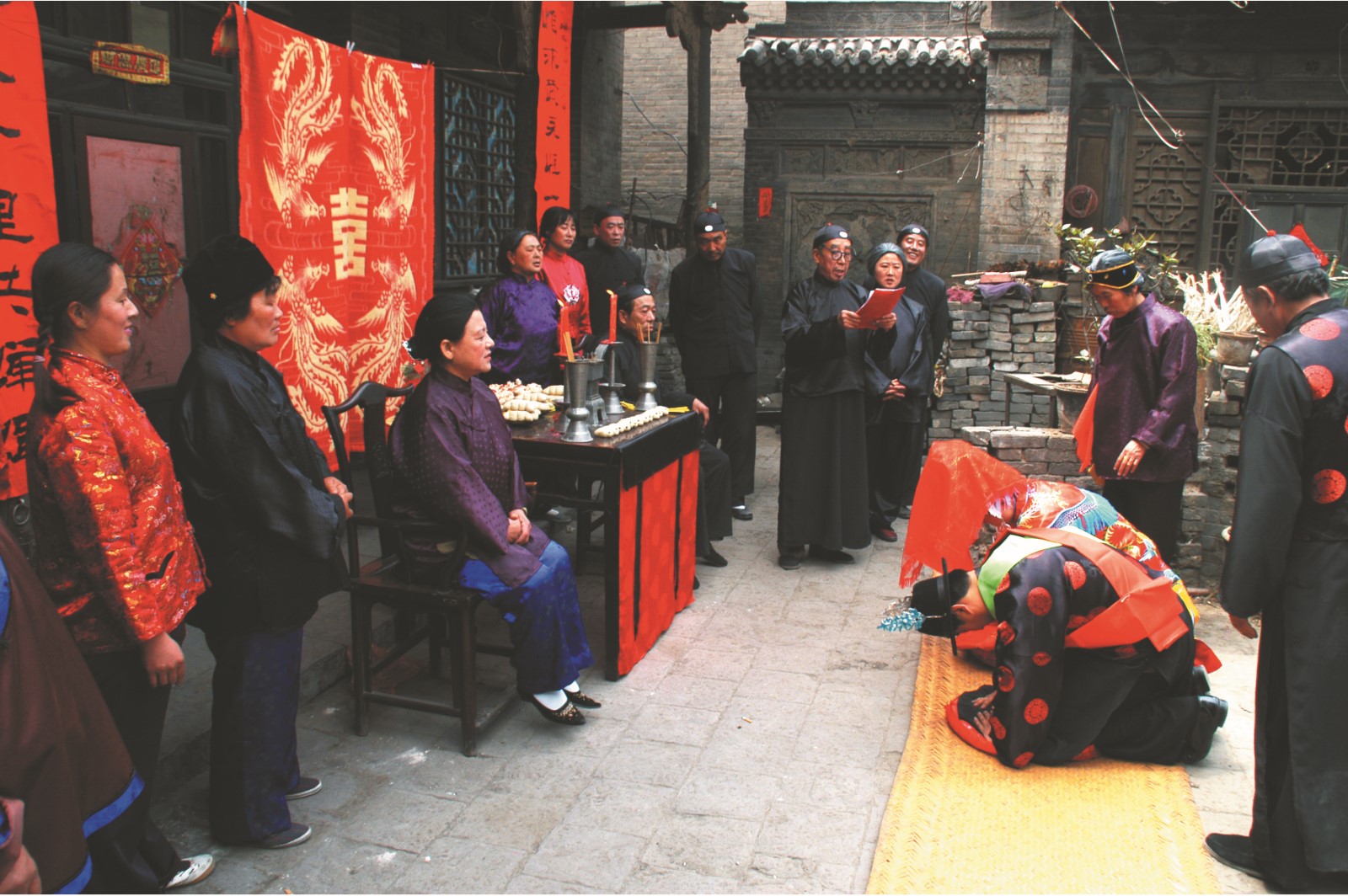 孝义贾家庄婚俗是沿袭与传承了古代婚俗六礼的基本规制,并结合当地文化与风俗的特点,演绎、细化、传承喜庆热烈的婚嫁礼仪程序。它具有古朴而丰富的内容,婚俗仪式大体分为三个阶段、四十多项礼仪,每一项都有着深邃的文化寓意,具有鲜明的地方特色,是中华民族婚庆礼仪习俗活的标本。