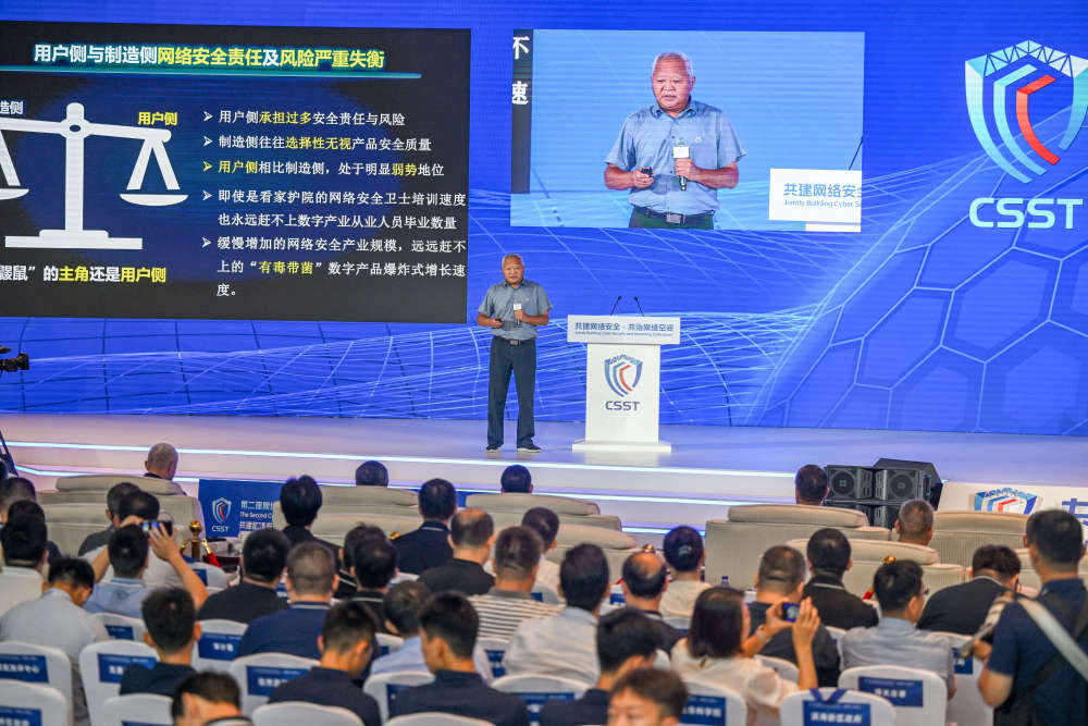 9月4日,中国工程院院士邬江兴在第二届网络空间安全(天津)论坛主论坛上进行专题报告。新华社记者 孙凡越 摄