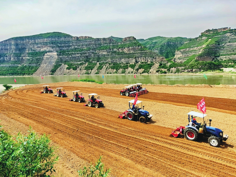 永和县乾坤湾乡黄河岸畔农业生产托管主体捷登农机专业合作社正在实施春耕春播。 图片来自资料图