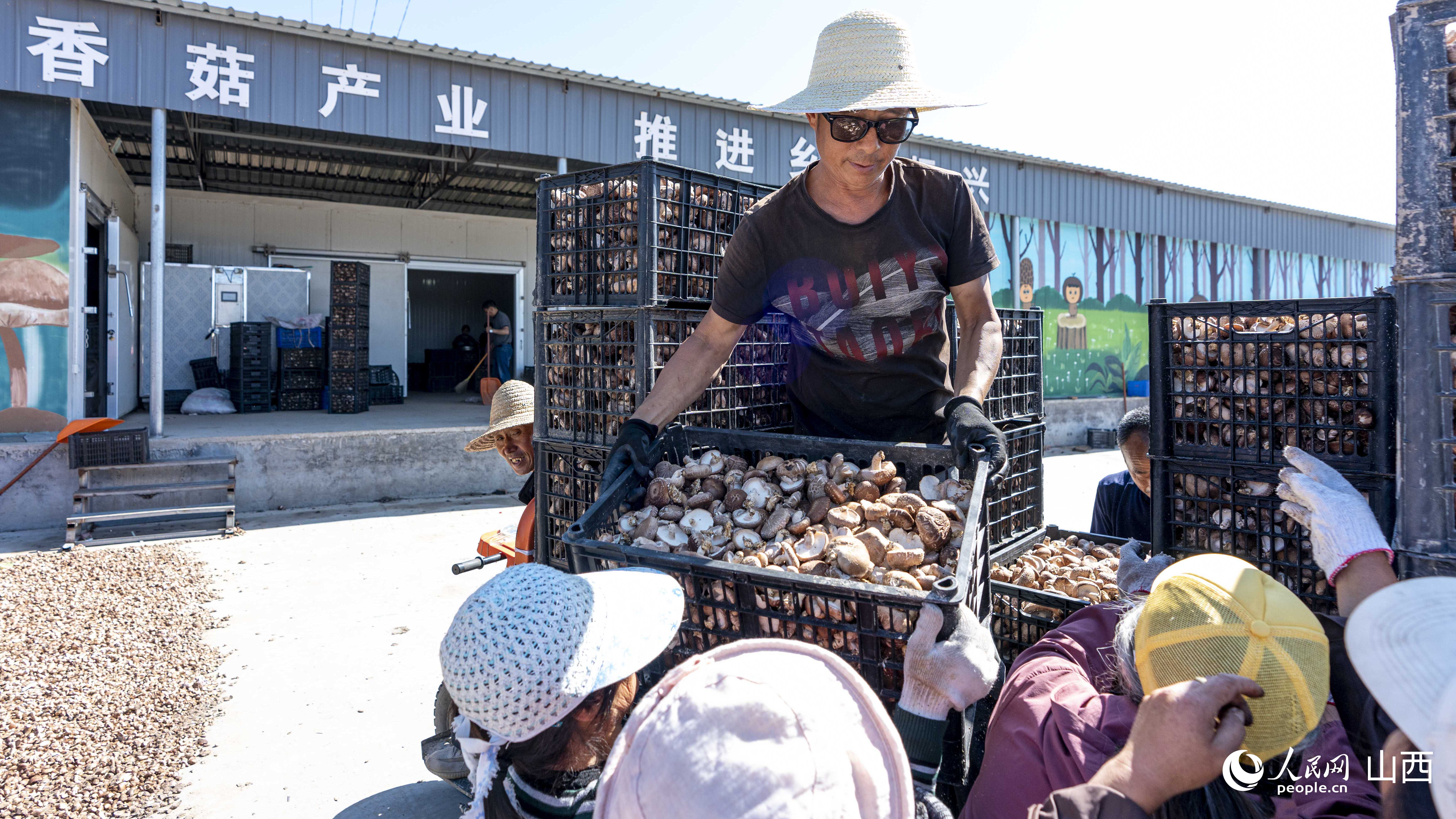 菇农忙着搬运香菇。人民网卢鹏宇 摄