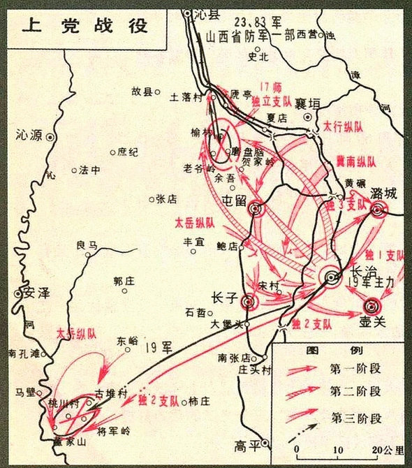 1945年9月1日晚8时,太行军区第三八五旅等主力部队和襄垣独立营、区游击队等地方武装,向襄垣城发起进攻,经过4个多小时激战,襄垣县城宣告解放,上党战役拉开序幕。刘伯承、邓小平调集太行、太岳、冀南3个军区主力及地方兵团3.1万人,于9月10日正式发动上党战役。至19日,相继收复屯留、潞城、长子、壶关4城,20日合围上党地区首府长治,阎锡山急调2个军,共8个师和2个炮兵团2万余人从太原增援。晋冀鲁豫军区采取“围城打援”的战术,继续围攻长治,主力秘密北上。
