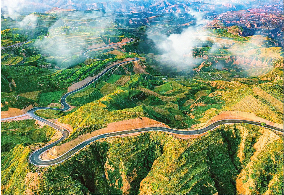 移步换景,邂逅夏日好风光。“太行一号”旅游公路如巨龙般穿梭在崇山峻岭之间,串起如画的山间风景。图为“太行一号”旅游公路榆次段。