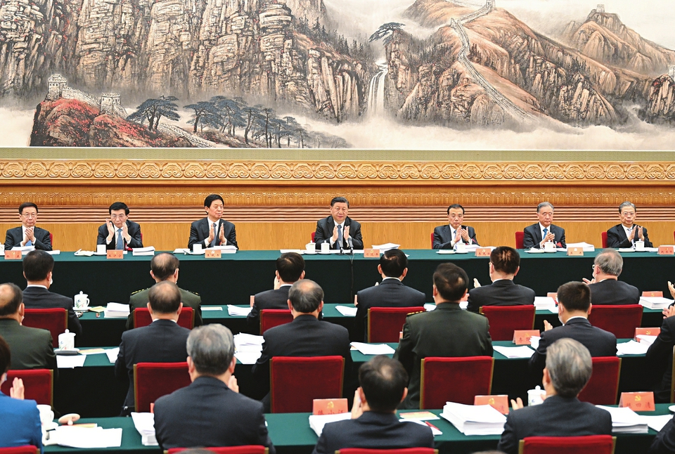 10月18日,中国共产党第二十次全国代表大会主席团在北京人民大会堂举行第二次会议。习近平、李克强、栗战书、汪洋、王沪宁、赵乐际、韩正等出席会议。新华社记者李学仁摄