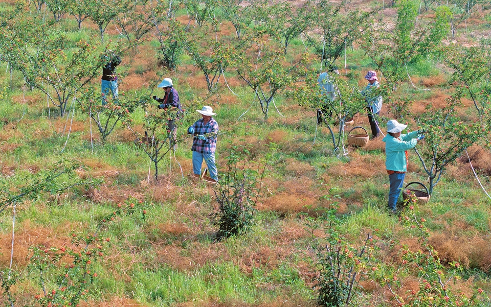 9月4日,襄汾县盘道村,种植户在采收花椒。近年来,该村大力发展花椒种植产业,带动农民增收致富。李现俊摄