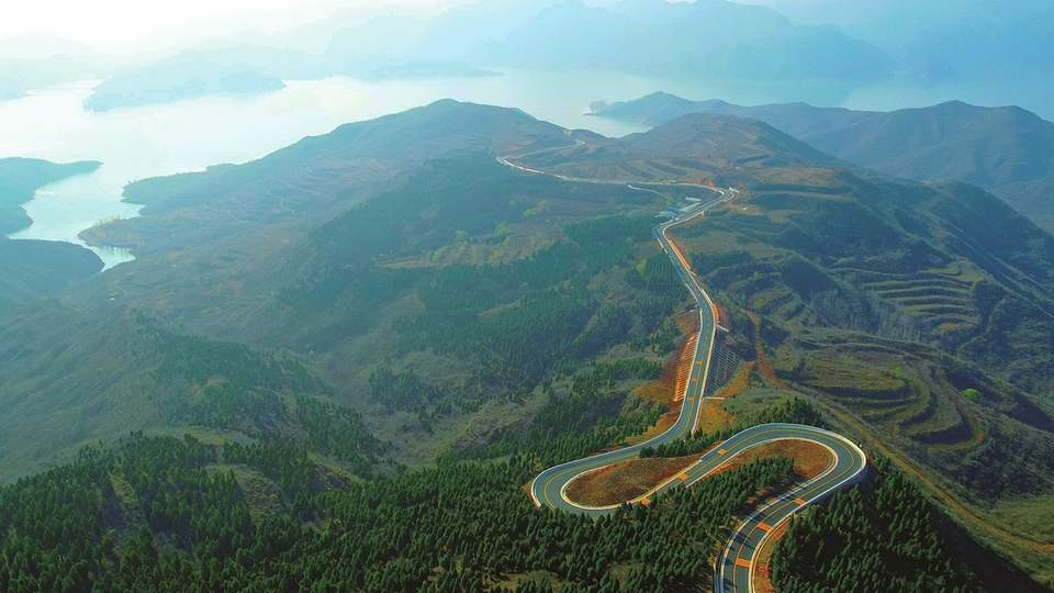 11月30日,拍摄于黄河一号旅游公路垣曲县新改建的无恨至东寨黄河码头三级公路。这条刚刚贯通的旅游公路全长10.759公里,投资4000余万元,有力推动了当地生态旅游融合发展。崔松良摄